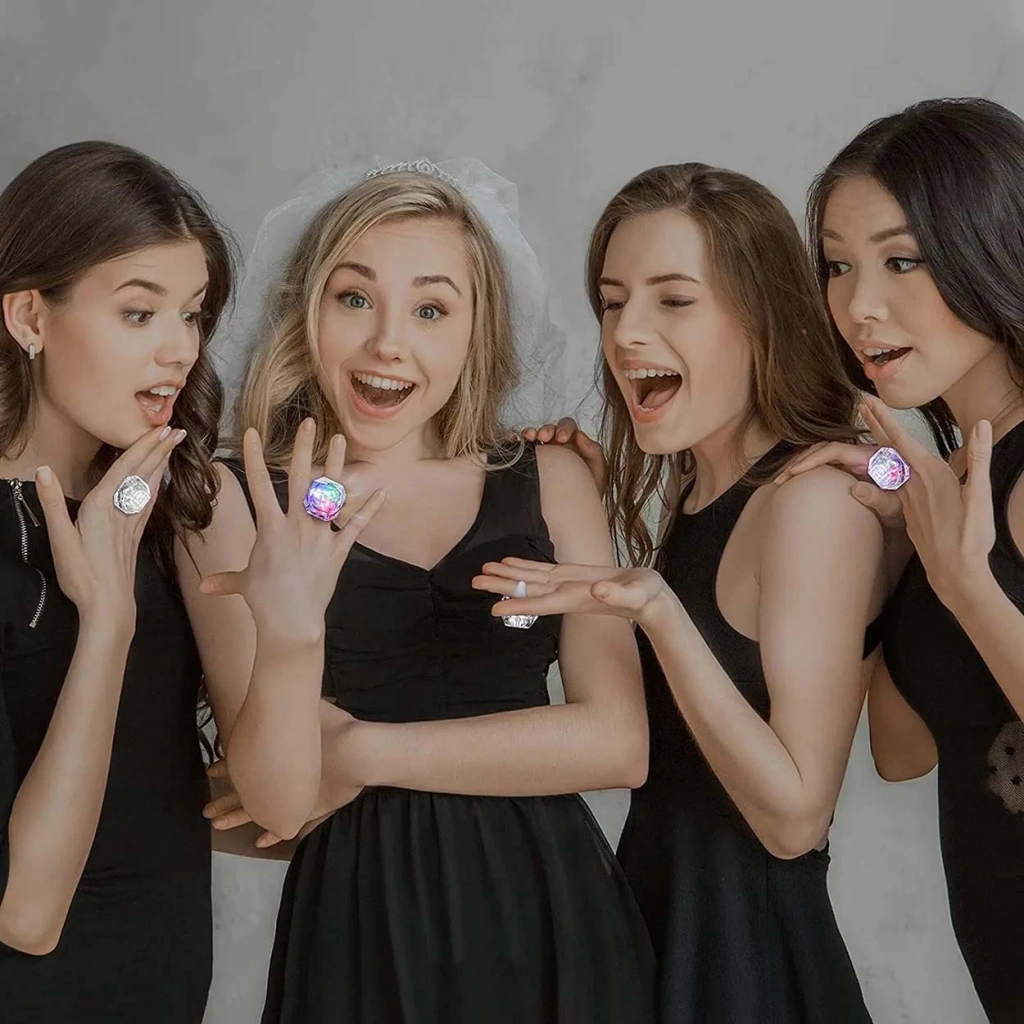 6'LI KRİSTAL LED PARTİ YÜZÜK SETİÜrün Özellikleri6'lı kristal LED parti yüzük seti, rengarenk ışık yayan tasarımıyla eğlenceli etkinlikler ve partiler için vazgeçilmez bir aksesuardır. Kristal taş görünümlü şeffaf yüzükler içlerindeki LED ışıklar sayesinde farklı renklerde parlayarak gecenize enerji katar. Hem yetişkinler hem de çocuklar için kullanılabilir ve ayarlanabilir yapısı ile parmakta rahat bir kullanım sunar. Doğum günü, yılbaşı, düğün, kına, festival ve özel etkinliklerde dikkat çekici bir detay olarak öne çıkar.Paket İçeriği1 paket 6 adet kristal LED yüzük