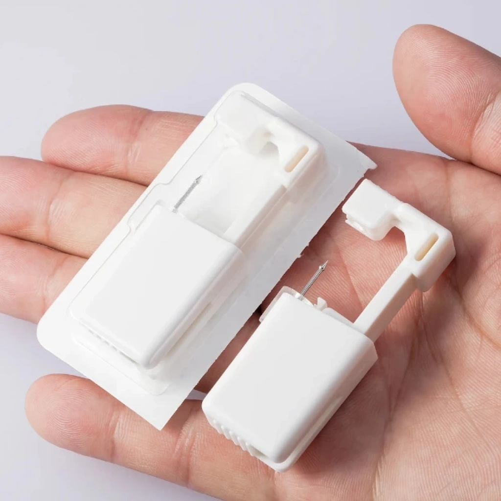 KULAK DELME APARATI Ürün ÖzellikleriHijyenik ve pratik kullanıma sahip tek kullanımlık kulak delme aparatı, güvenli bir şekilde kulak delme işlemi için tasarlanmıştır. Steril paketinde sunulur ve her kullanım öncesi alkol pedi ile bölgenin temizlenmesi önerilir. Kullan-at özelliği sayesinde enfeksiyon riskini en aza indirir. Evde veya profesyonel kullanım için uygundur. Kolay uygulanabilir yapısı ile acısız ve hızlı bir deneyim sunar.Paket İçeriği1 adet tek kullanımlık kulak delme aparatı1 adet alkol pedi