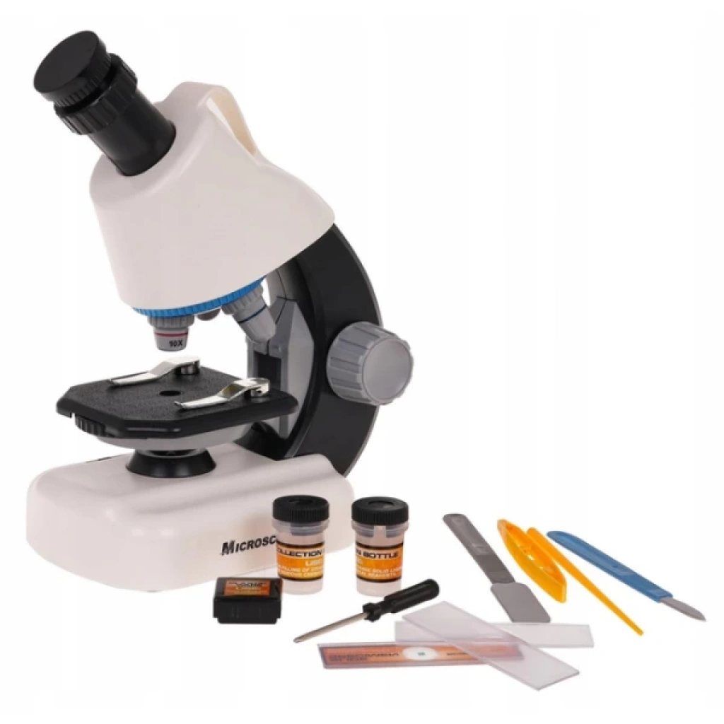 STEM MİKROSKOP SETİÜrün ÖzellikleriSTEM mikroskop seti, bilimsel çalışmalara ilgi duyan çocuklar ve öğrenciler için geliştirilmiş profesyonel bir settir. 10X ve 20X göz merceği ile birlikte 4X, 10X ve 40X objektif lenslere sahiptir. Bu kombinasyon sayesinde 40X’ten 1200X’e kadar büyütme imkânı sunarak hücre, mikroorganizma ve küçük objelerin detaylı incelenmesini sağlar. 16.3x10x21.8 cm boyutlarındaki kompakt tasarımı sayesinde hem sınıf ortamında hem de evde kolaylıkla kullanılabilir. LED aydınlatma sistemi sayesinde net ve parlak görüntüler elde edilir. 2 adet AA pil ile çalışan cihaz, kolay taşınabilir yapısıyla eğitim ve hobi amaçlı kullanım için uygundur.Paket İçeriği1 adet Stem Mikroskop Seti